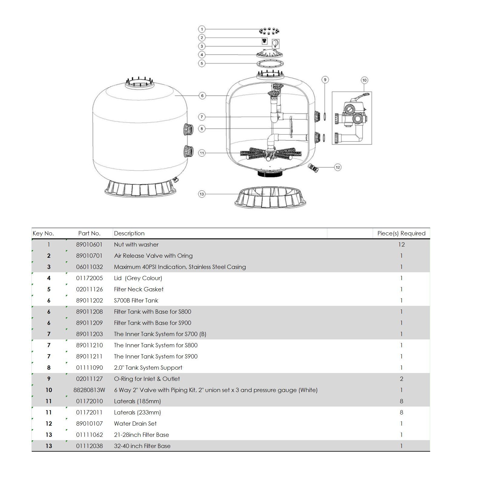 Aquaviva S900 — модель увеличенной мощности, с потенциалом фильтрации до 29,70 м³/час. Это универсальное решение для частных бассейнов и СПА, емкостью до 120 тыс.л. Механическая очистка воды производится за счет слоя песка, который загружается через верхнюю горловину бочки. В фильтре рекомендуется применять кварцевый или стеклянный песок, с фракцией 0.5 — 0.8 мм. Масса засыпки составляет до 470 кг. Фильтр оснащен 6-режимным клапаном управления фильтрацией Aquaviva. Тип подключения фильтра – боковой. Диаметр подключения стандартный – 2 дюйма (63 мм).