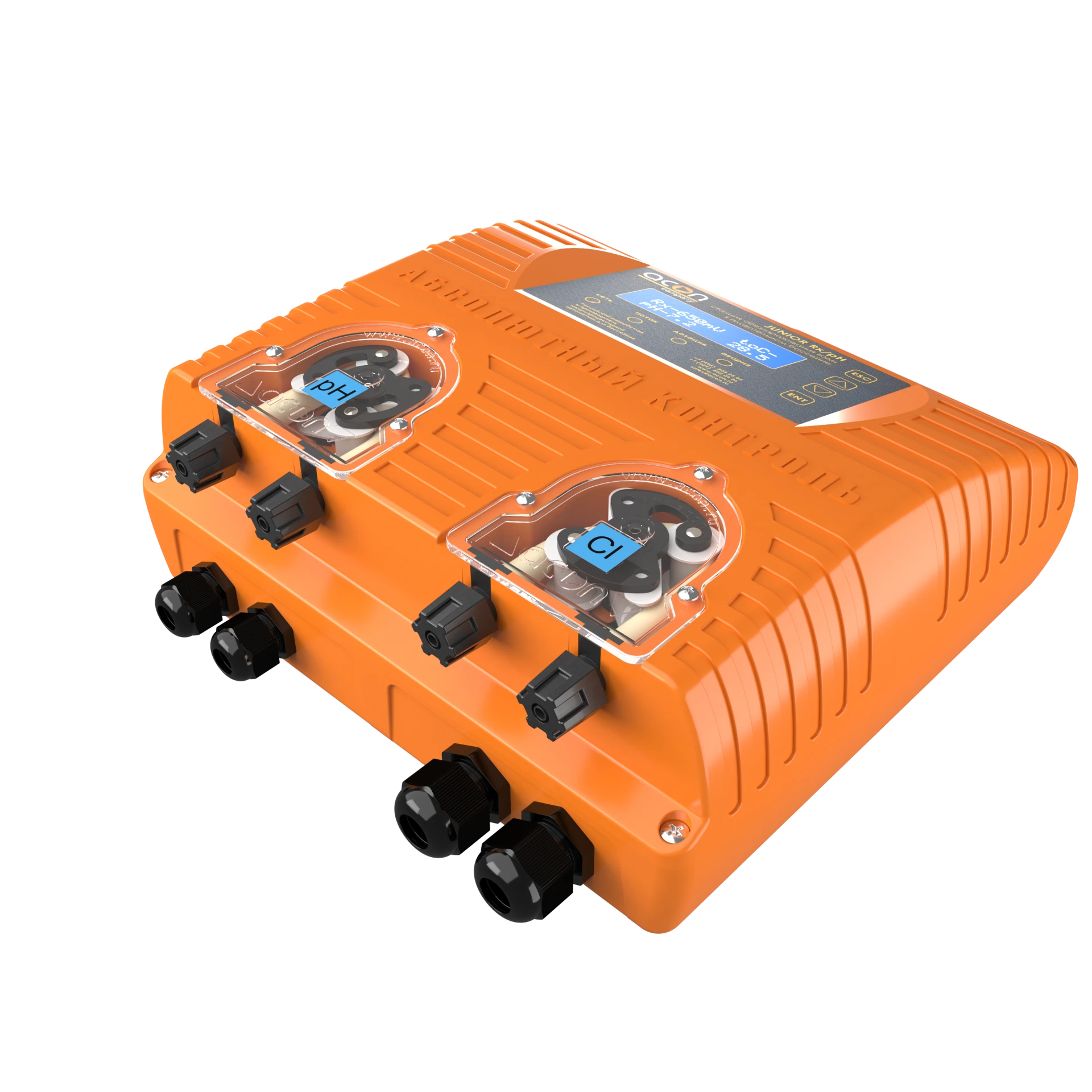 Два бесшумных перистальтических насоса с производительностью 2.2 л/ч (опционально 1.5 л/ч) с возможностью настройки на дозирование любых видов химии для плавательных бассейнов.